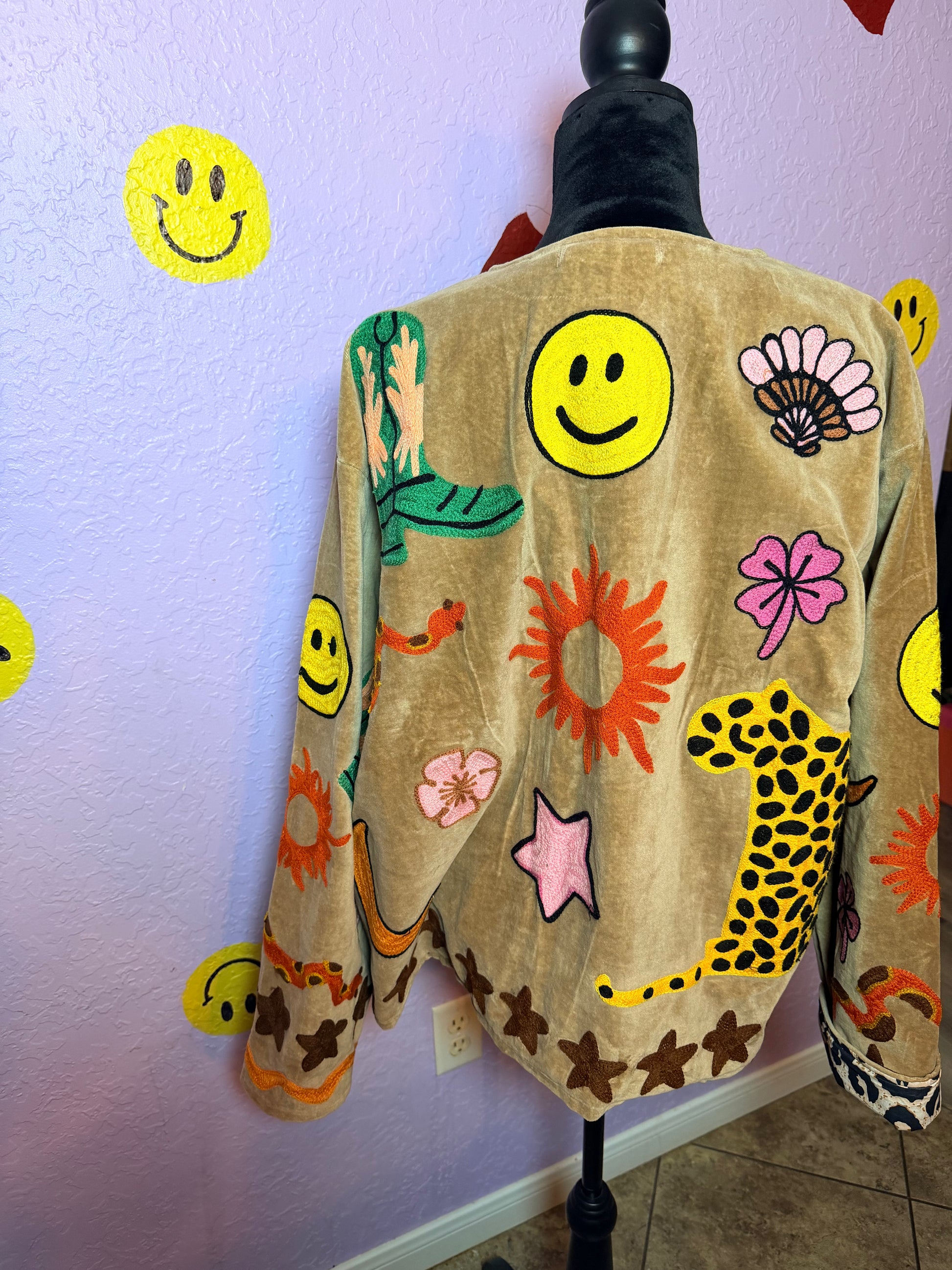 This product is handmade with delicate fabrics including velvet & it requires special care to maintain the quality, color and shape! *WE RECOMMEND TAKING THIS JACKET TO A PROFESSIONAL DRY CLEANERS*